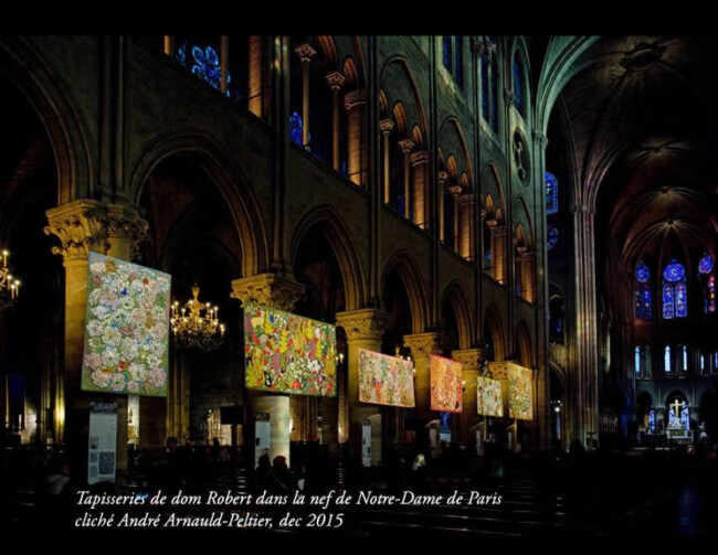 Elle avait déjà été présentée à Notre-Dame l'hiver 2015, lors de l'exposition "Dom Robert, Ode à la Création", pendant la COP 21. Six grandes tapisseries emblématiques de l'artiste avaient ainsi été suspendue dans la nef.